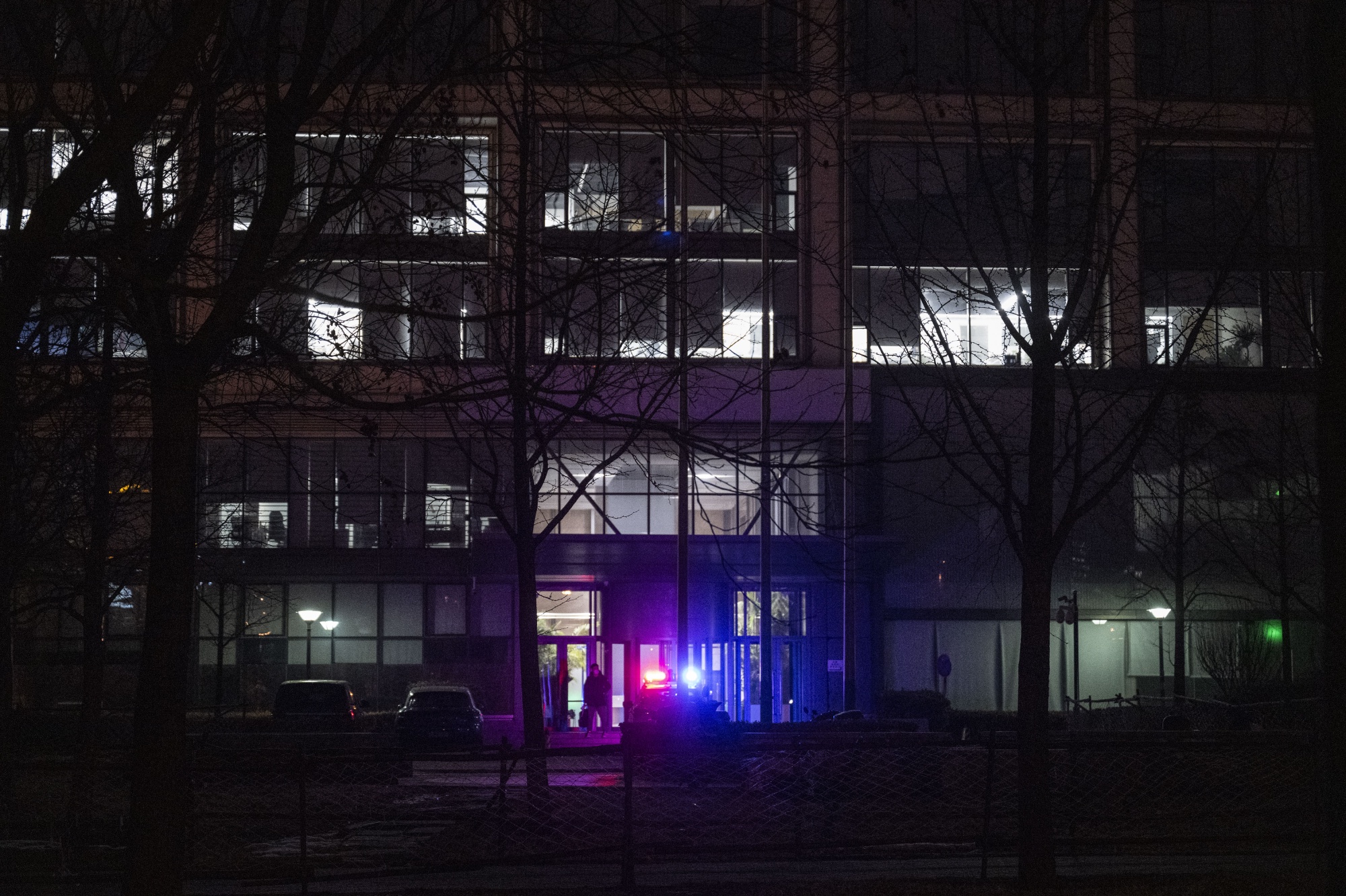 一辆警车停在北京中智企业集团总部大楼外,日期为1月5日。