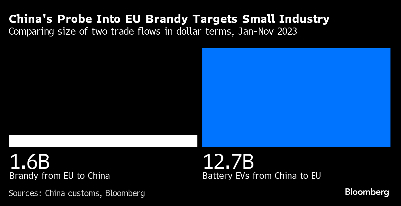 白兰地行业规模较小——截至2023年11月,中国进口葡萄烈酒总额为157亿美元,而在同一时期对欧盟出口的电动车总额约为127亿美元——因此,白兰地行业似乎更倾向于与布鲁塞尔进行谈判。
