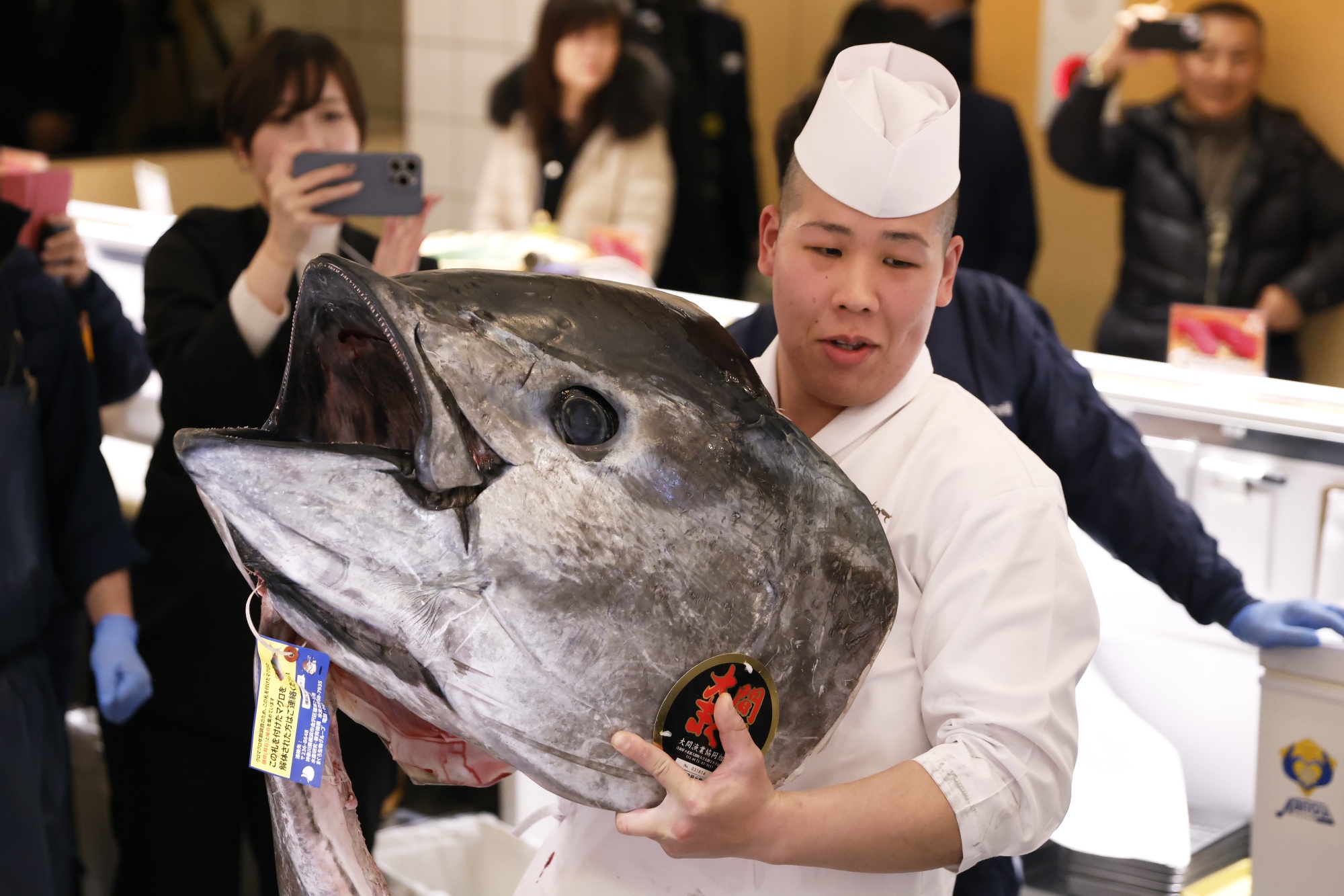 一名员工搬运了东京豊洲市场年度首次拍卖的最昂贵金枪鱼的头部。摄影师:Kiyoshi Ota/Bloomberg东京最大的鱼市在新年的传统中,于第一个工作日出售了一条巨型蓝鳍金枪鱼,售价为788,440美元。如果你想尝一尝,它将作为寿司在银座的米其林星级餐厅小野寺供应。