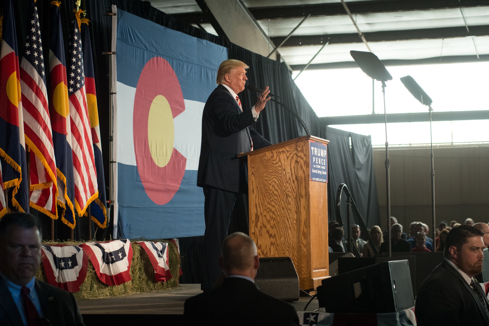 唐纳德·特朗普在2016年科罗拉多斯普林斯的集会上发言。摄影师:西奥·斯特鲁默/盖蒂图片社 北美### 独立的竞选活动