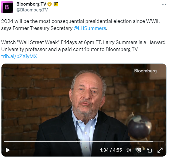 当我们进入总统选举年时,我们还询问了拉里对全球华尔街可能意味着什么的早期看法,这是我们将通过一系列声音继续进行的。萨默斯在谈到两位领先者总统拜登和前总统特朗普之间的鲜明对比,以及他认为这次选举将会有多大影响时,直言不讳。