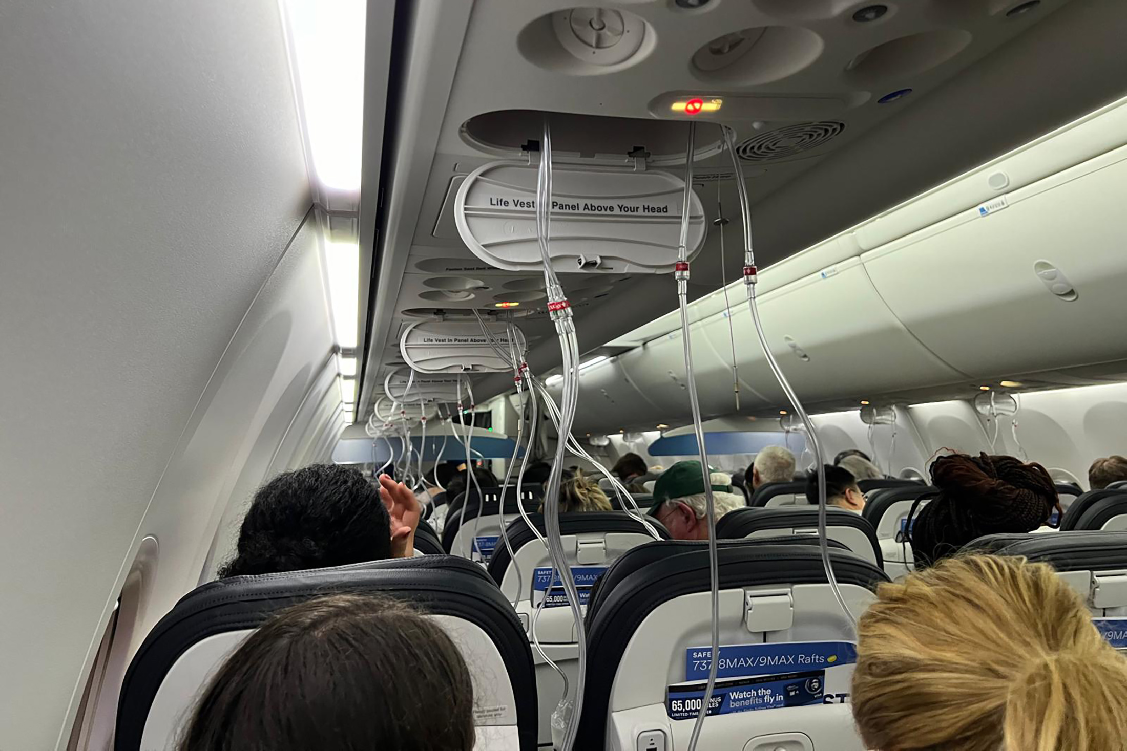 阿拉斯加航空波音737 Max 9型飞机,航班1282上的氧气面罩在1月5日被迫返回波特兰国际机场时部署。来源:尼古拉斯·霍赫尼古拉斯·霍赫在星期五晚上波特兰,俄勒冈州离开时,正在阿拉斯加航空1282航班上放松地听播客。几分钟后,他给他的母亲和女朋友发短信说他爱他们,并想知道自己是否会死。
