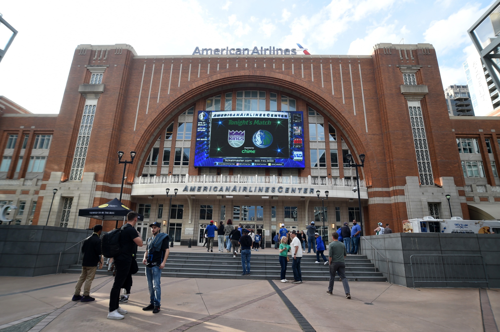 2023年4月5日,达拉斯举行国王队对小牛队比赛前,美国航空中心南入口的景象。摄影师:约翰·里维拉/Icon Sportswire通过盖蒂图片社达拉斯小牛队也可能离开他们的市中心(附近)的体育馆。所有者马克·库班在去年11月宣布将他的多数股权出售给与酒店和赌场行业有关的家族,并表示他将考虑搬迁到一个新的体育场,尽管仍在市区范围内。