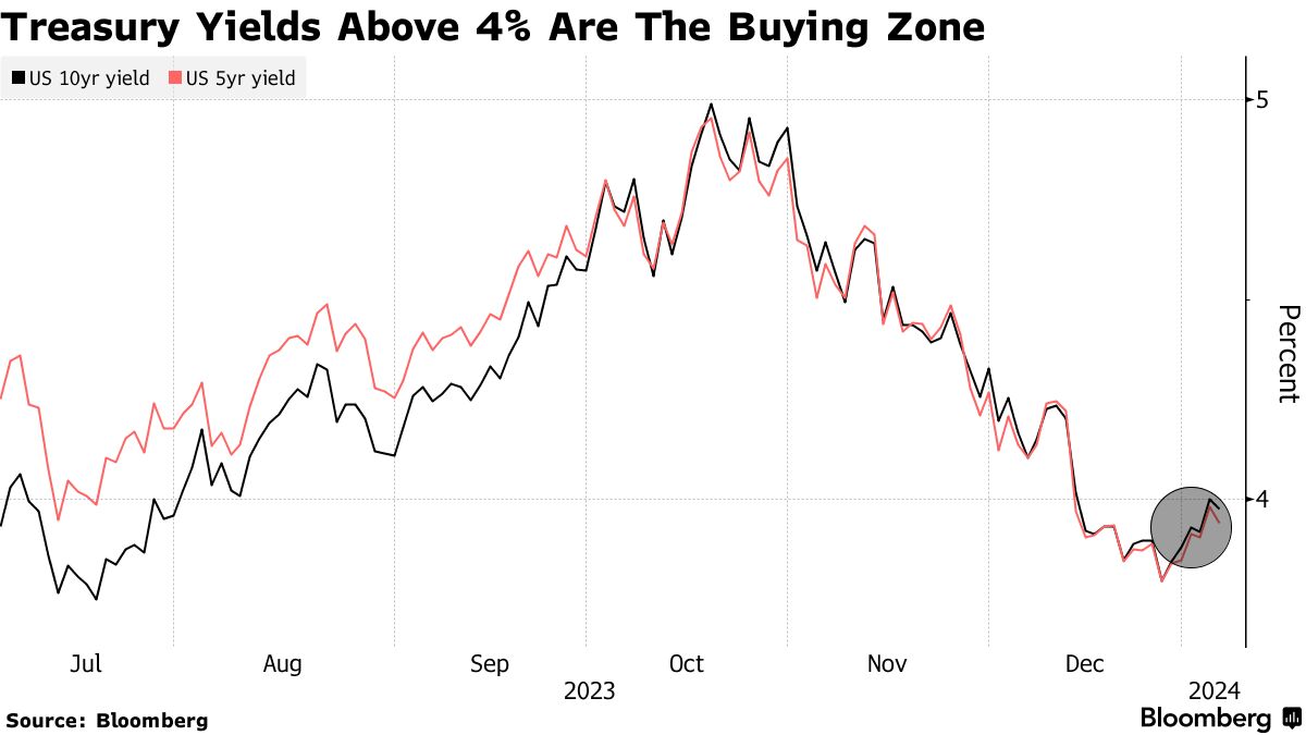 债券交易员抓住4%的收益率,相信美联储将会降息 - 彭博报道