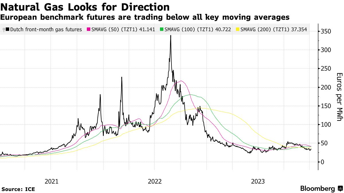欧洲的气温可能正在下降,这可能会提高供暖和发电燃料的需求,但充足的储备应该会在短期内控制价格。天然气储存水平目前约为86% — 高于五年平均水平。即便如此,红海地区的局势不断升级和不可预测的天气将使交易商保持警惕,标准荷兰合约的隐含波动率在新年开始时略有上升。期货合约最近几周一直呈现出基本横盘走势 — 并且低于关键的移动平均线 — 与该地区在2022年能源危机期间创纪录的激增形成鲜明对比。