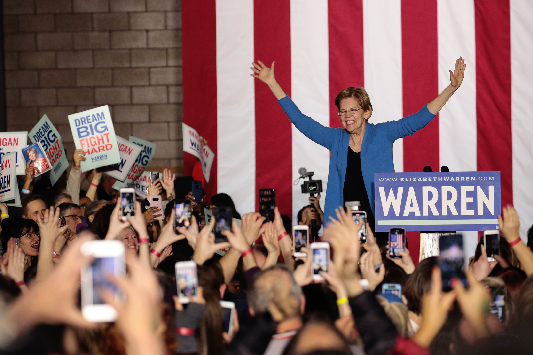 2020年在底特律举行的拉力赛上的沃伦。摄影师:斯科特·奥尔森/盖蒂图片社“左派正在寻找一个冠军,”曾帮助发起桑德斯竞选的高级顾问马克·朗加博回忆道,“在那之前的十五年里,民主党内的左派势力已经大幅增长。”