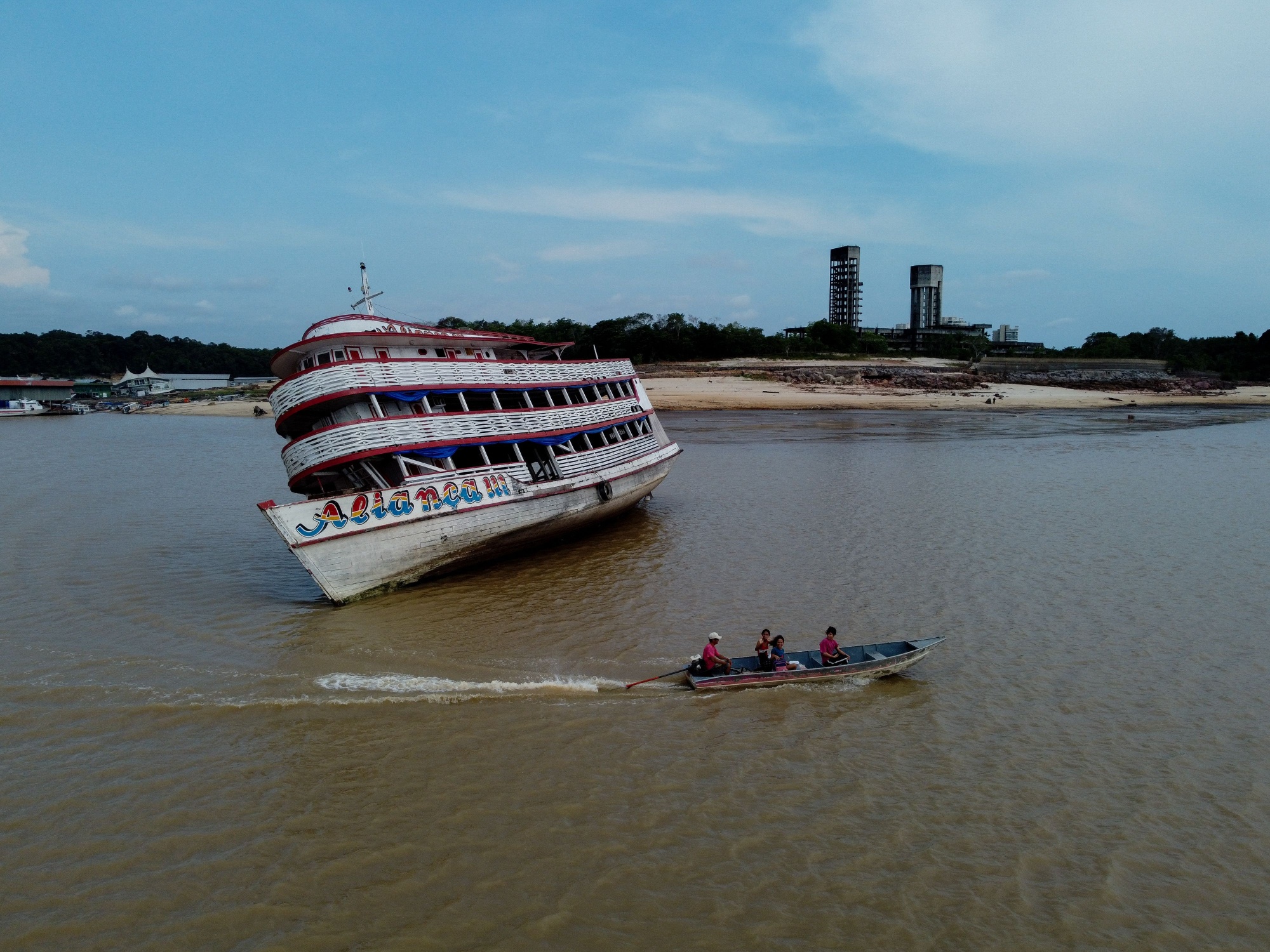 巴西亚马逊城市马瑙斯的一艘搁浅渡轮,摄于十月。摄影师:Michael Dantas/AFP/Getty Images### 野火