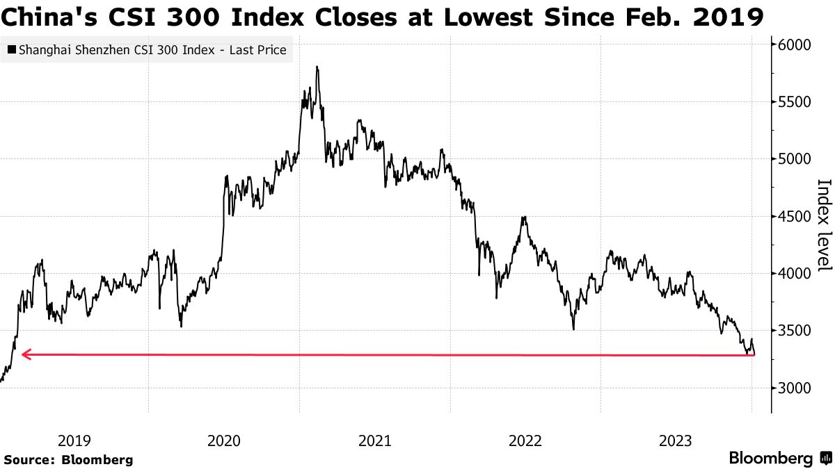2023年,中国证监会300指数创下了有史以来第三个连续年度亏损,因通过与香港的交易通道进行的外国购买创下了有史以来最小。