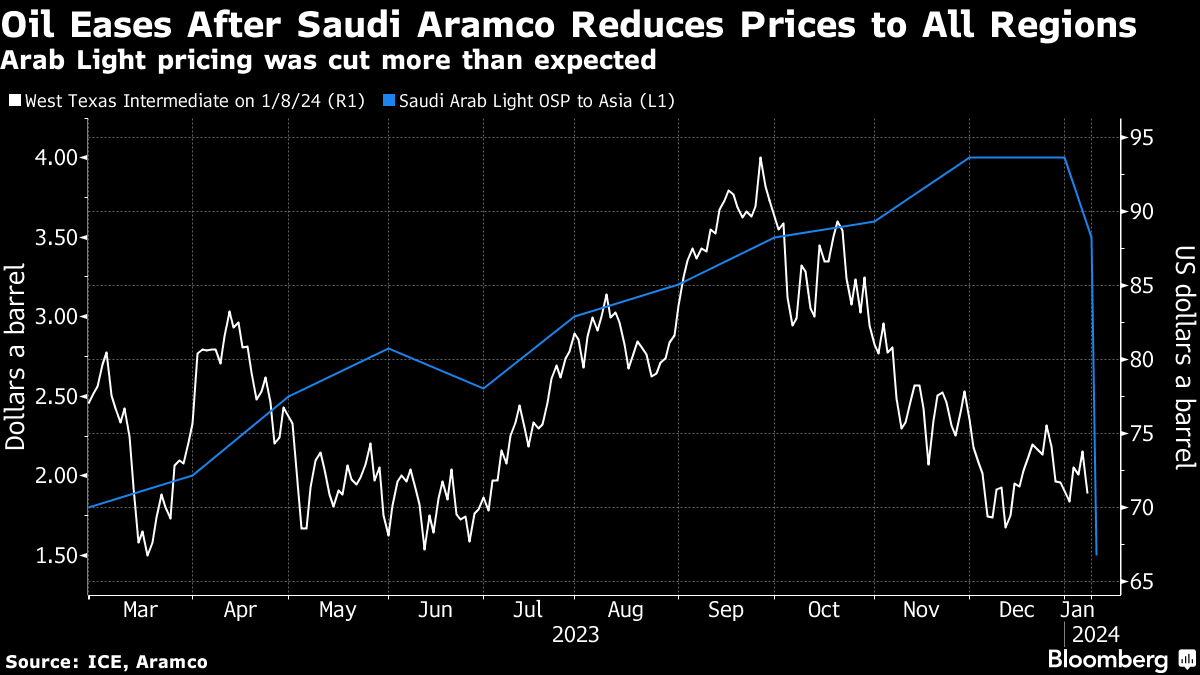 沙特的价格削减反映了石油年底的疲软。但利比亚的供应已经中断,红海的袭击仍在继续,这可能有助于推动复苏。然而,华尔街一直在下调今年的价格预期。