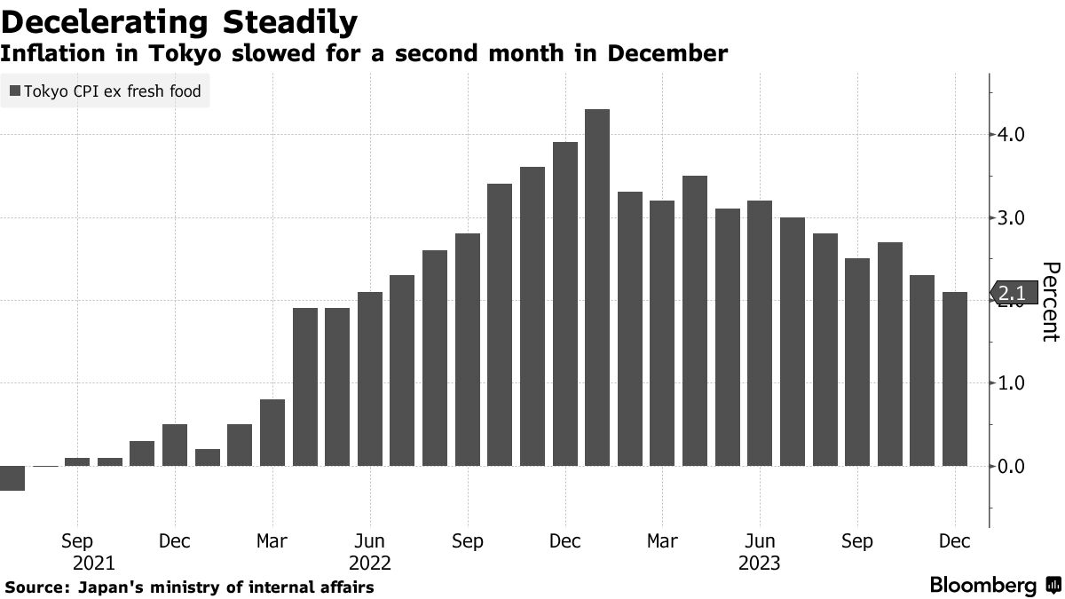 东京消费者价格在12月份第二个月放缓,这表明成本推动的通货膨胀可能在减缓,而节俭的消费者也在削减自由支出。