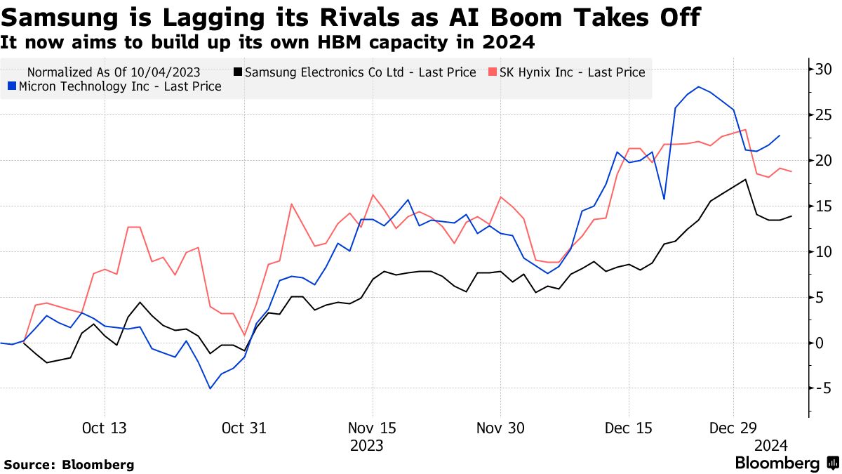 该公司现在旨在在高密度内存芯片领域赶上竞争对手SK海力士公司,计划在2024年将产能提高2.5倍。HBM是一种处理数据更快的先进芯片,可与英伟达公司的加速器等硬件配合,加快处理像训练AI模型这样的密集任务的数据处理速度。