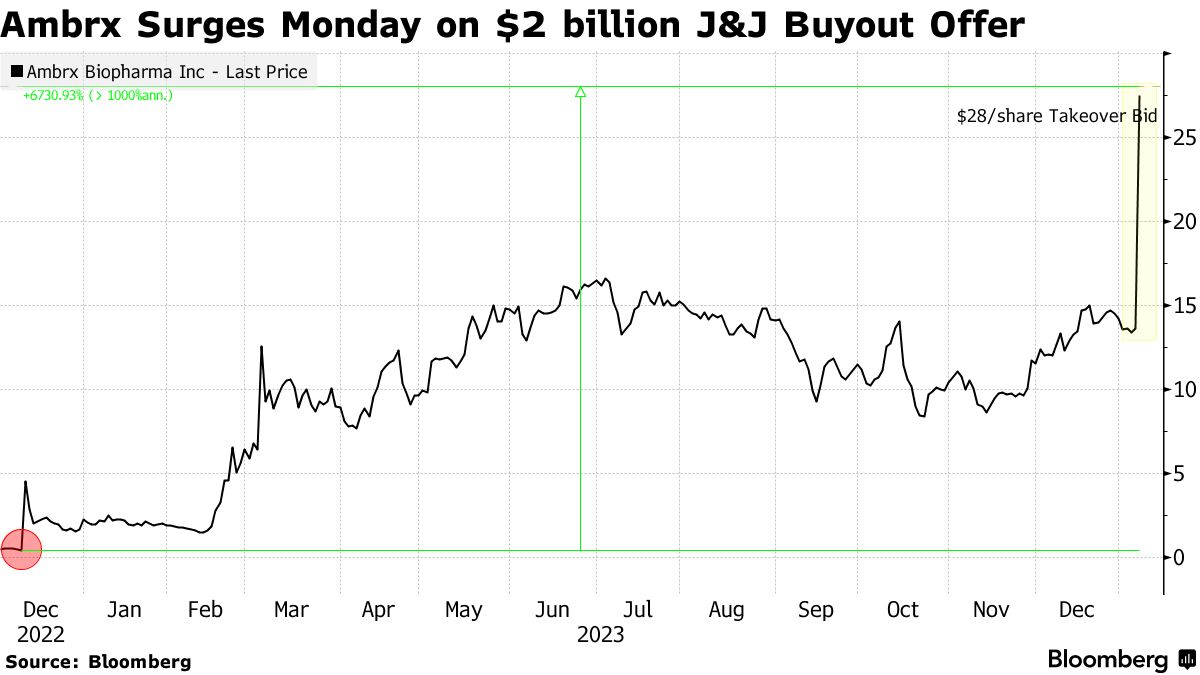 Ambrx股票的波动彰显了并购如何能够加速创新生物科技公司的回报。在经历了两年的裁员和资金筹集困难的低迷后,该行业在年末的购买狂潮中勉强实现了小幅增长。