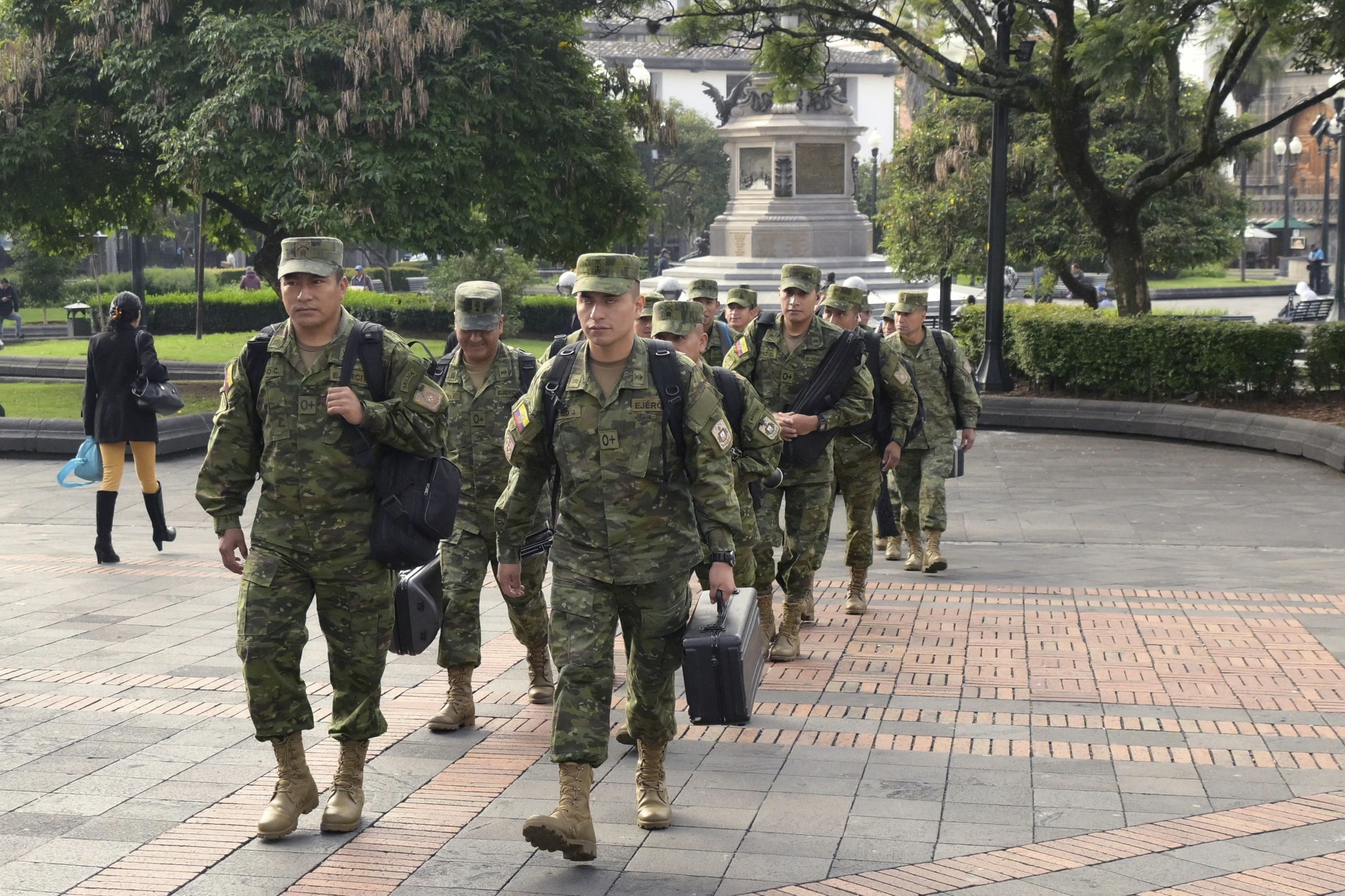 士兵们在厄瓜多尔基多总统府周围部署摄影师:Rodrigo Buendia/AFP/Getty Images“那些因贩毒、雇凶杀人和组织犯罪而被判刑的人曾经指使现任政府做什么的时代已经结束了,” 诺博亚在社交网络发布的视频声明中说。