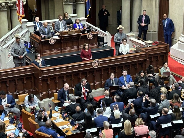 2024年1月9日,纽约州奥尔巴尼市,州长凯西·霍楚尔发表国情咨文扎克·威廉姆斯/彭博法律### 与进步派的冲突
