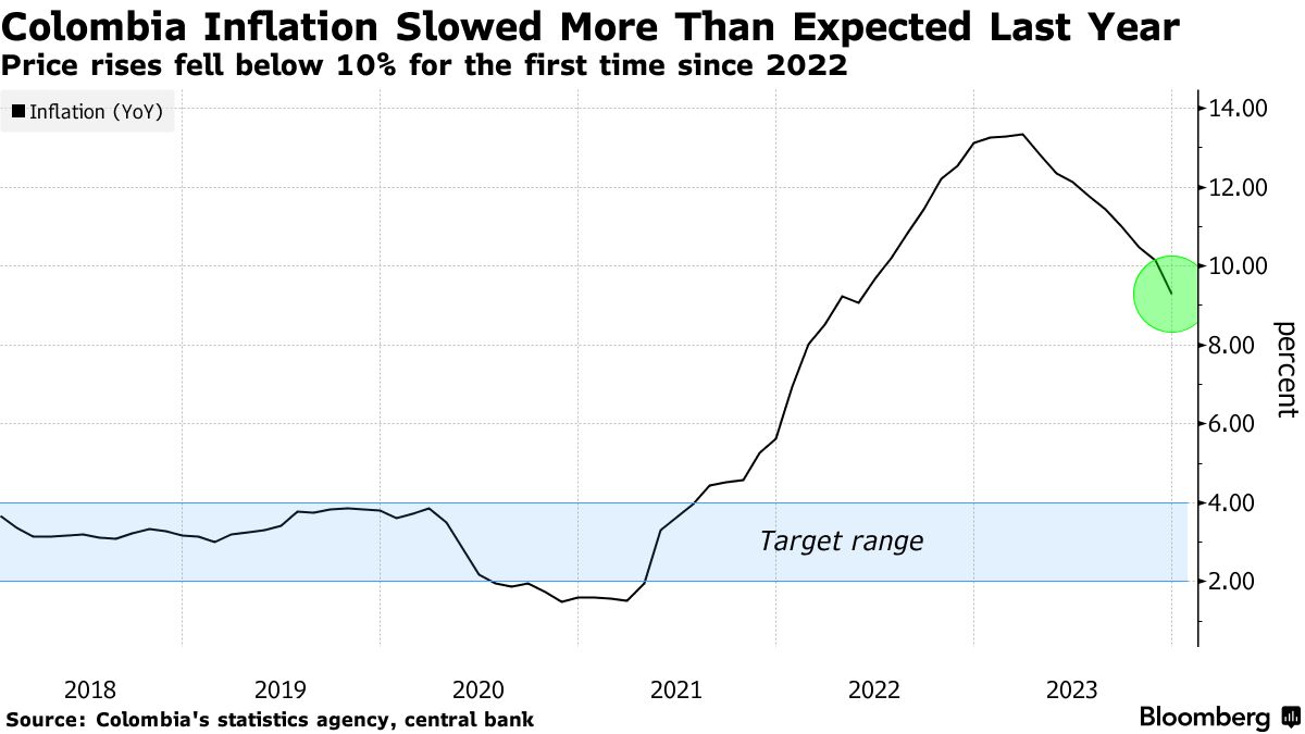 哥伦比亚的通货膨胀上个月放缓得比预期更多,为央行加快货币宽松周期打开了大门。