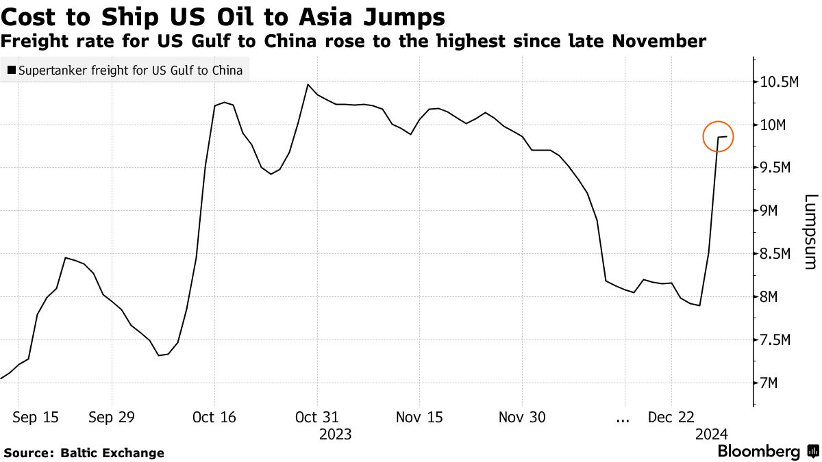 货运费率的飙升对全球石油市场产生了影响-彭博社
