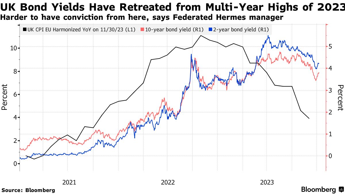 “去年大部分时间我们一直持有英国国债,因为我预计通货膨胀会迅速下降,所以对我来说,去年是一个令人不安的一年。但情况已经明朗,”联合领导联合赫尔墨斯可持续全球投资级信用基金的加维说道。这家总部位于宾夕法尼亚州匹兹堡的公司管理着7150亿美元的资产。