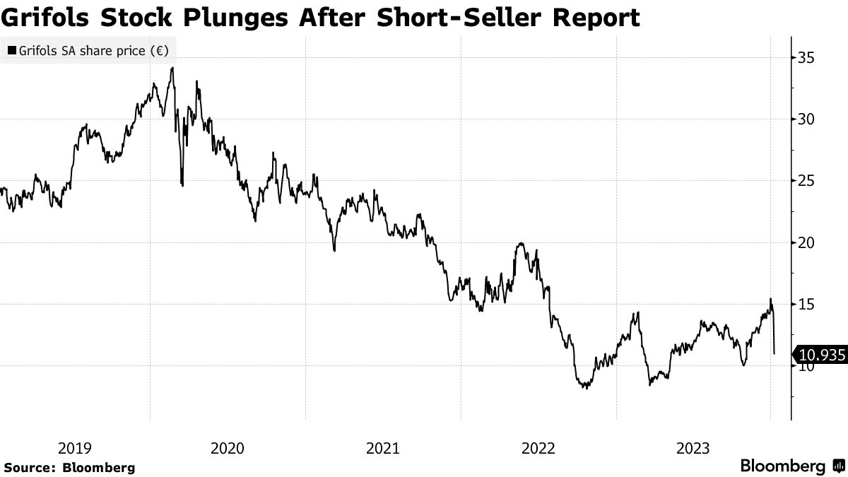 根据彭博编制的数据,Grifols在该报告发布后损失了超过20亿欧元(22亿美元)的价值,使该家族的财富缩水至少3.5亿欧元,该家族拥有该公司约35%的股份。