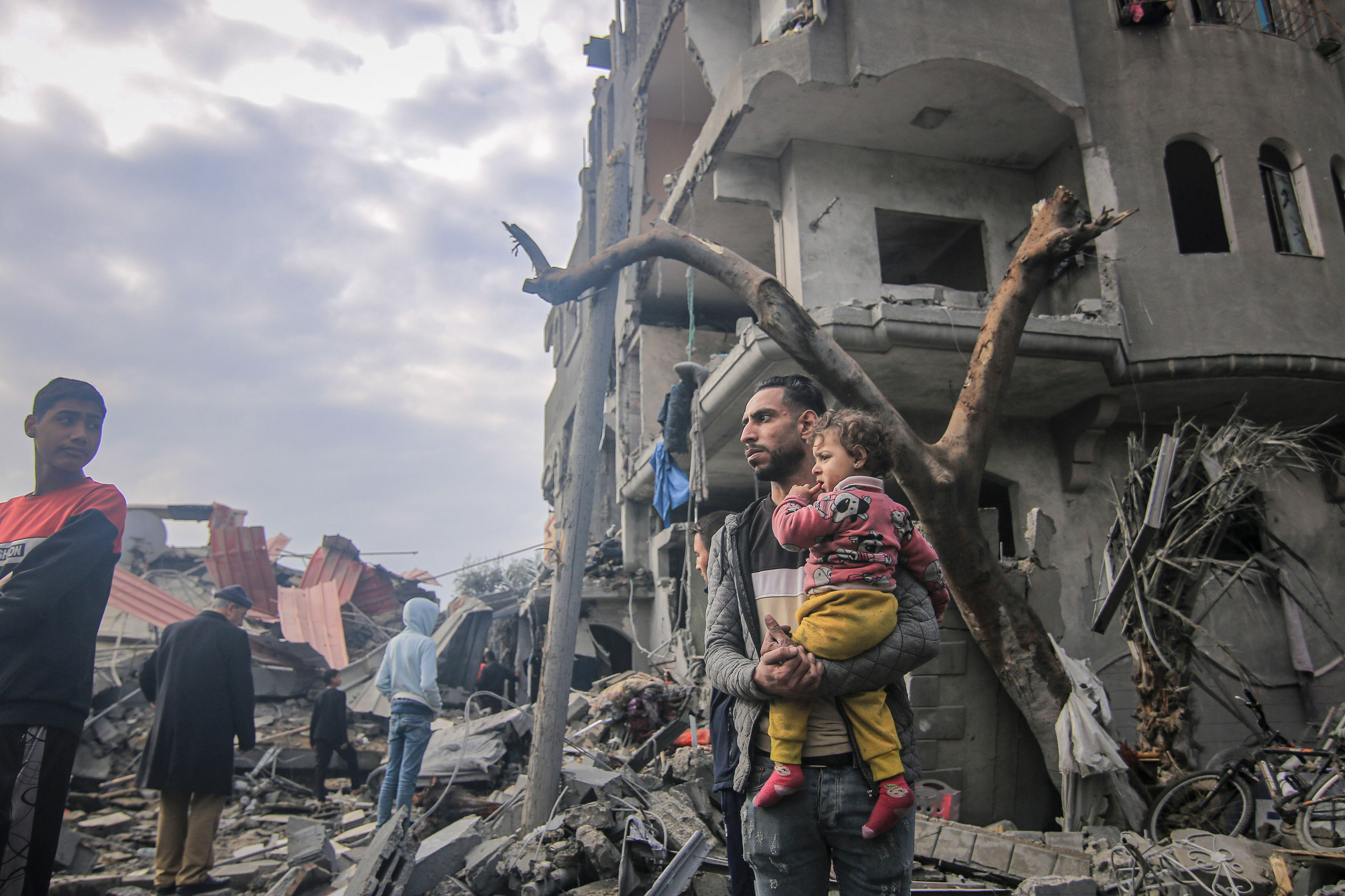 巴勒斯坦人在加沙中部Maghazi检查以色列轰炸摧毁的家园遗迹,日期为12月25日。