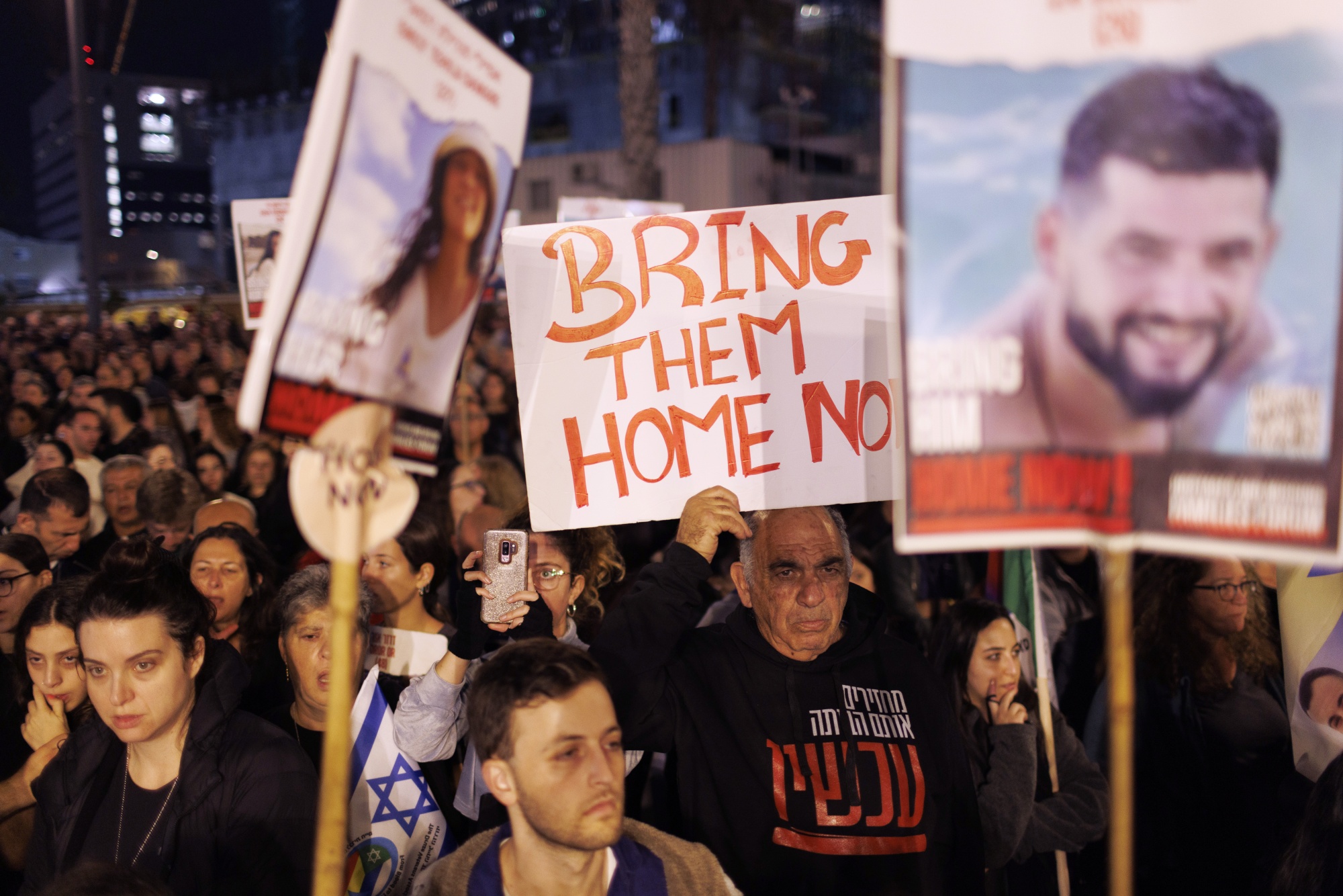 1月6日在特拉维夫要求释放人质的示威者。摄影师:科比·沃尔夫/彭博社### 全球必读