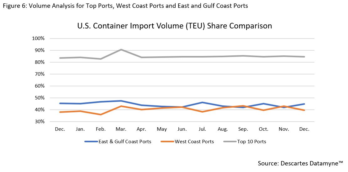 来源:Descartes Datamyne随着圣佩德罗湾港口群的贸易流量趋于平衡,红海地区的危机正在动摇全球航运。到目前为止,Cordero表示,这种动荡还没有影响到洛杉矶和长滩港口群。