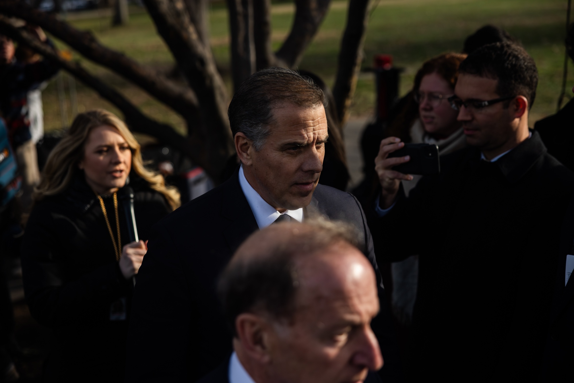 总统的儿子亨特·拜登与他的律师阿比·洛厄尔一同进入听证会议室时未回答问题。