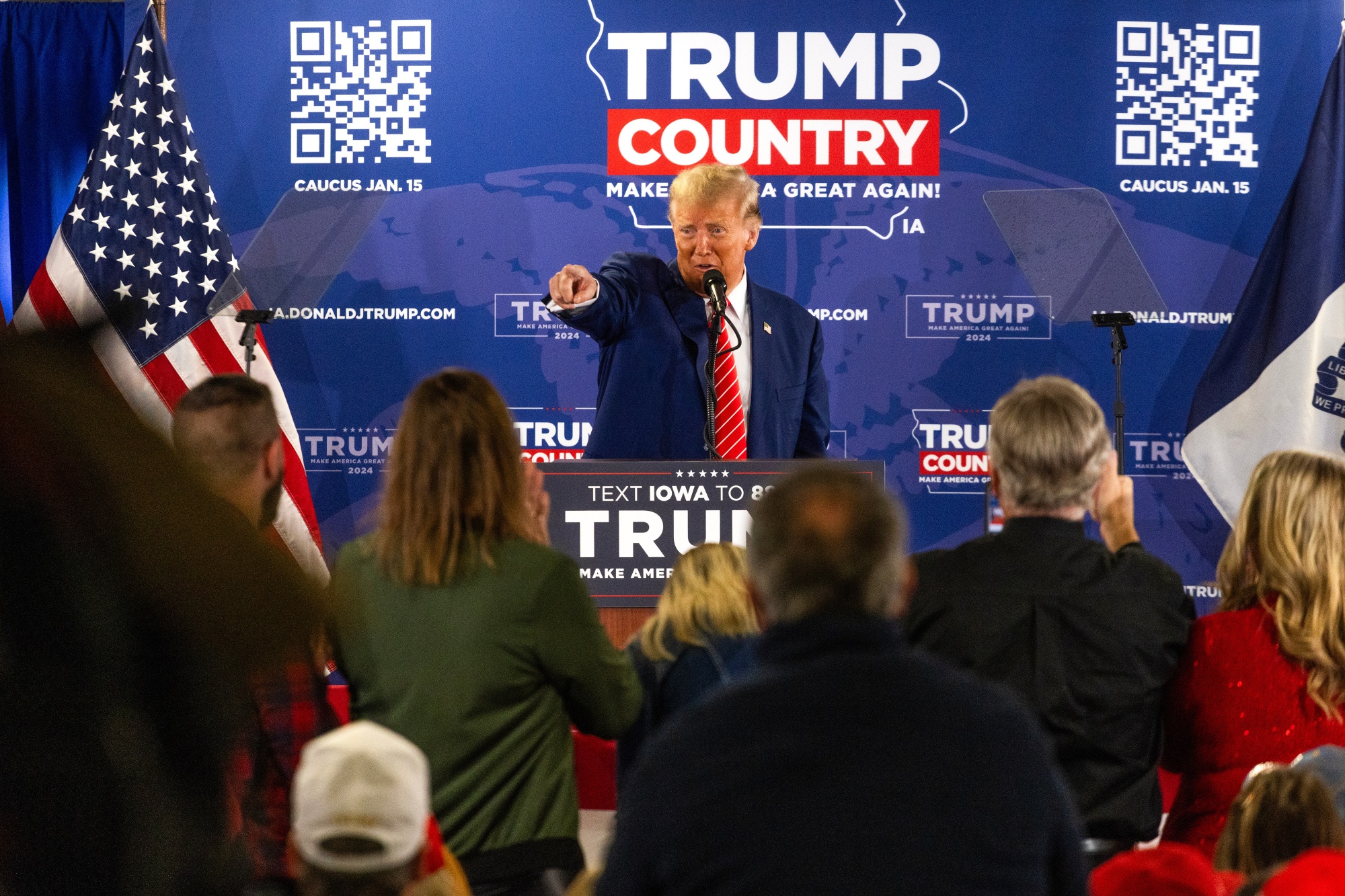 前总统唐纳德·特朗普在爱荷华州牛顿市的竞选集会上。