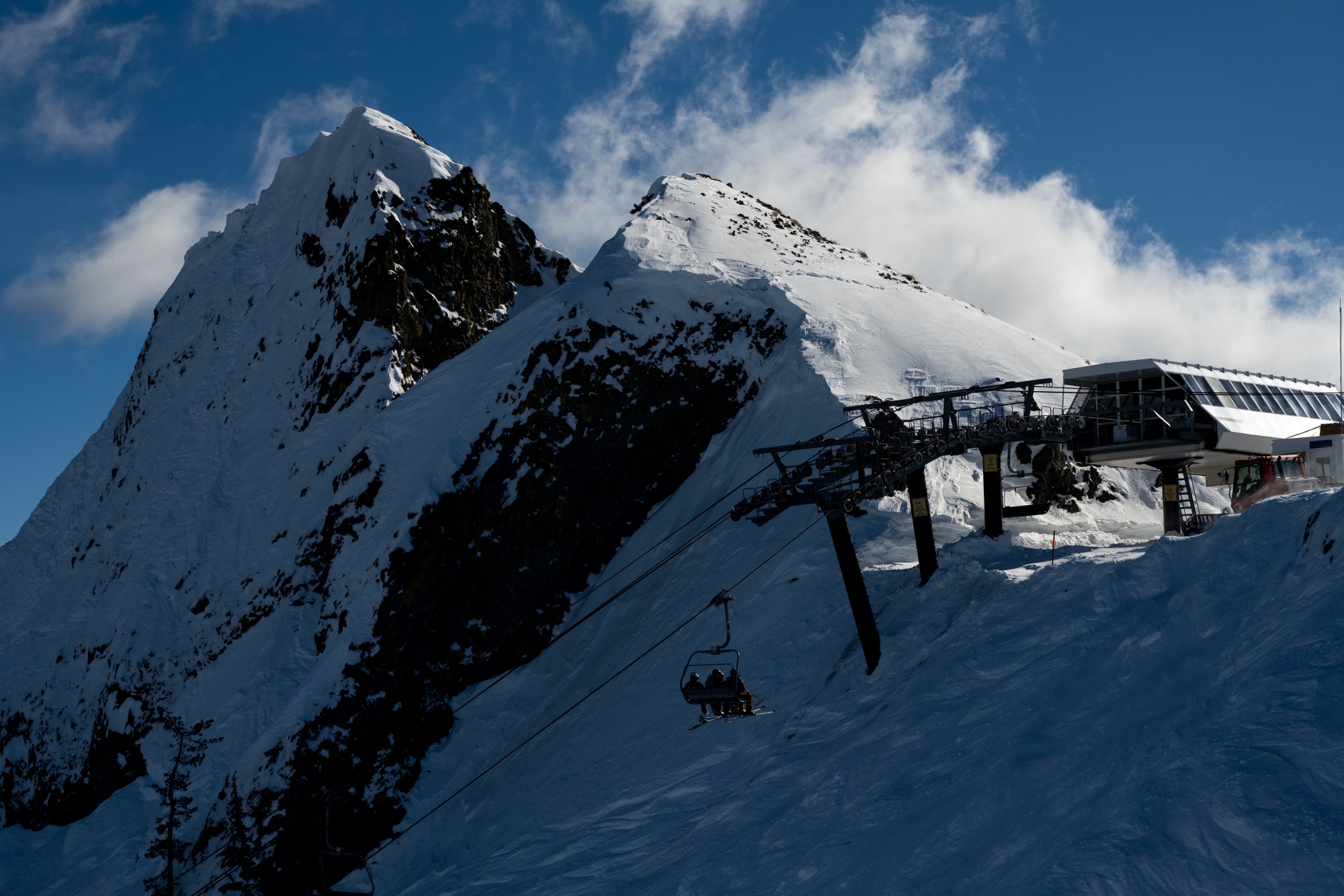 游客在2023年在加利福尼亚奥林匹克谷的Palisades Tahoe滑雪度假村搭乘滑雪缆车。