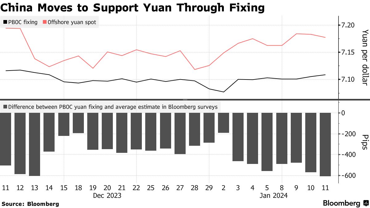 中国央行提供了自去年11月以来对人民币汇率的最强支持-彭博社