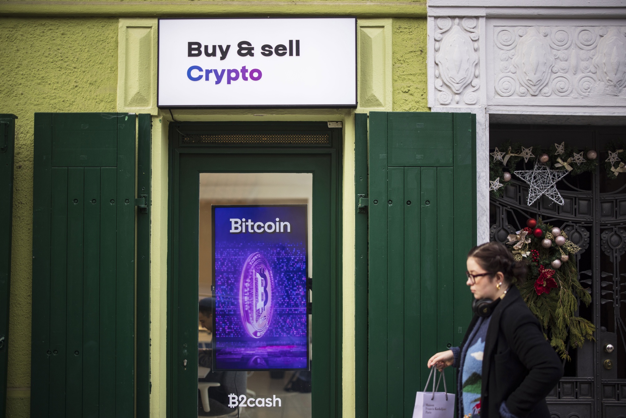 比特币在美国证券交易委员会裁决前一直飙升。上图:布拉格的一个加密货币交易所。
