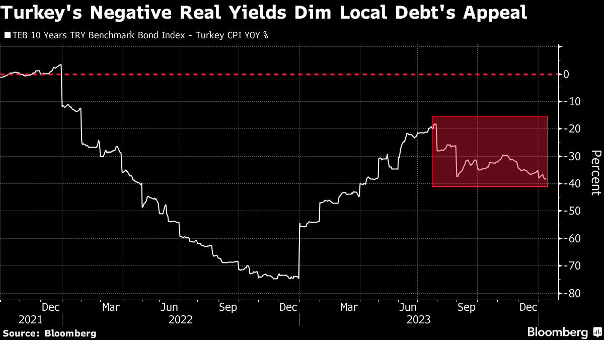 根据彭博新兴市场本币政府债券指数,土耳其拥有发展中国家中最高的本币收益率,该指数跟踪包括中国、巴西、墨西哥和南非在内的18个国家。