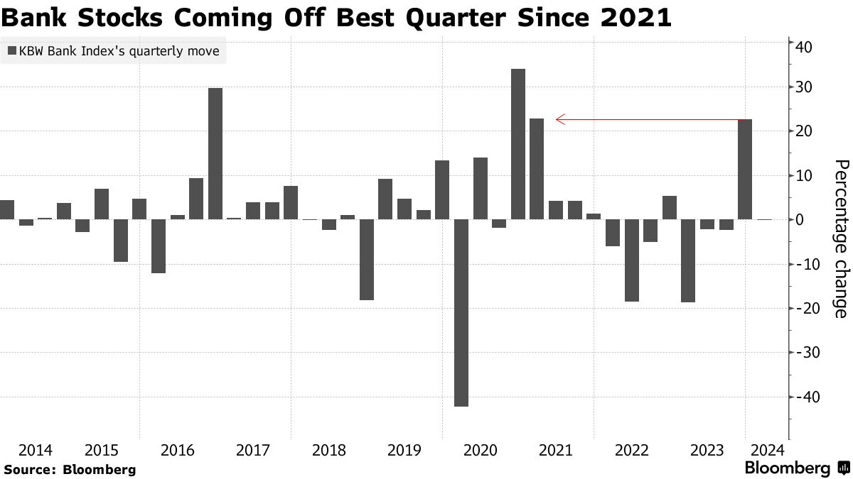 银行股在2023年大部分时间都承受着压力,然后从10月下旬开始大幅上涨,因为人们相信美联储将结束加息行动而不会引发衰退。现在焦点是政策宽松的时机,投资者将仔细研究这对银行业务的各个方面意味着什么,从贷款组合的健康状况到存款利率的前景。