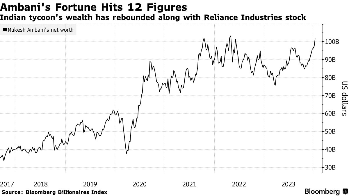 穆克什·安巴尼的财富超过1000亿美元,因为信实股票飙升-彭博社