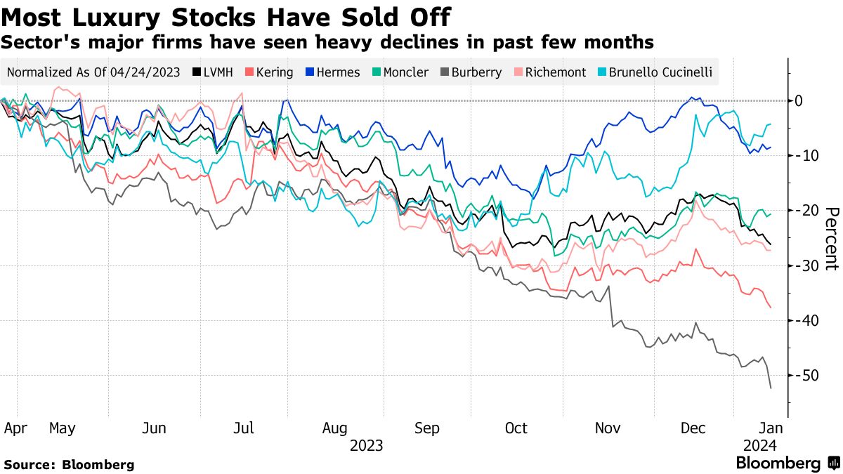 摄影师:Nathan Laine/Bloomberg奢侈品股票在今年年初表现不佳,延续了2023年的下跌,柏宝集团意外的利润预警打击了人们对近期反弹的希望。