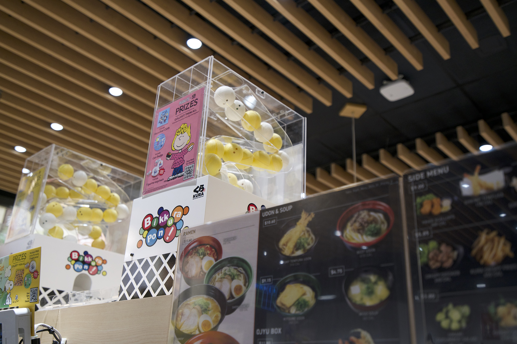 作为至少吃完15盘寿司的奖励,有花生主题的礼物。摄影师:Rachel Phua/Bloomberg除了食物,一台机器在一桌顾客吃完15盘寿司后会发放一个玩具奖励,这也让顾客不断光顾,并在网上发布有关他们的访问的帖子。这些玩具的视频,比如来自《花生漫画》等卡通系列的小玩意,已经导致了抖音和YouTube上的帖子,从而提高了一些店铺的销售额,乌巴说。这些玩具在eBay上可以高价销售。
