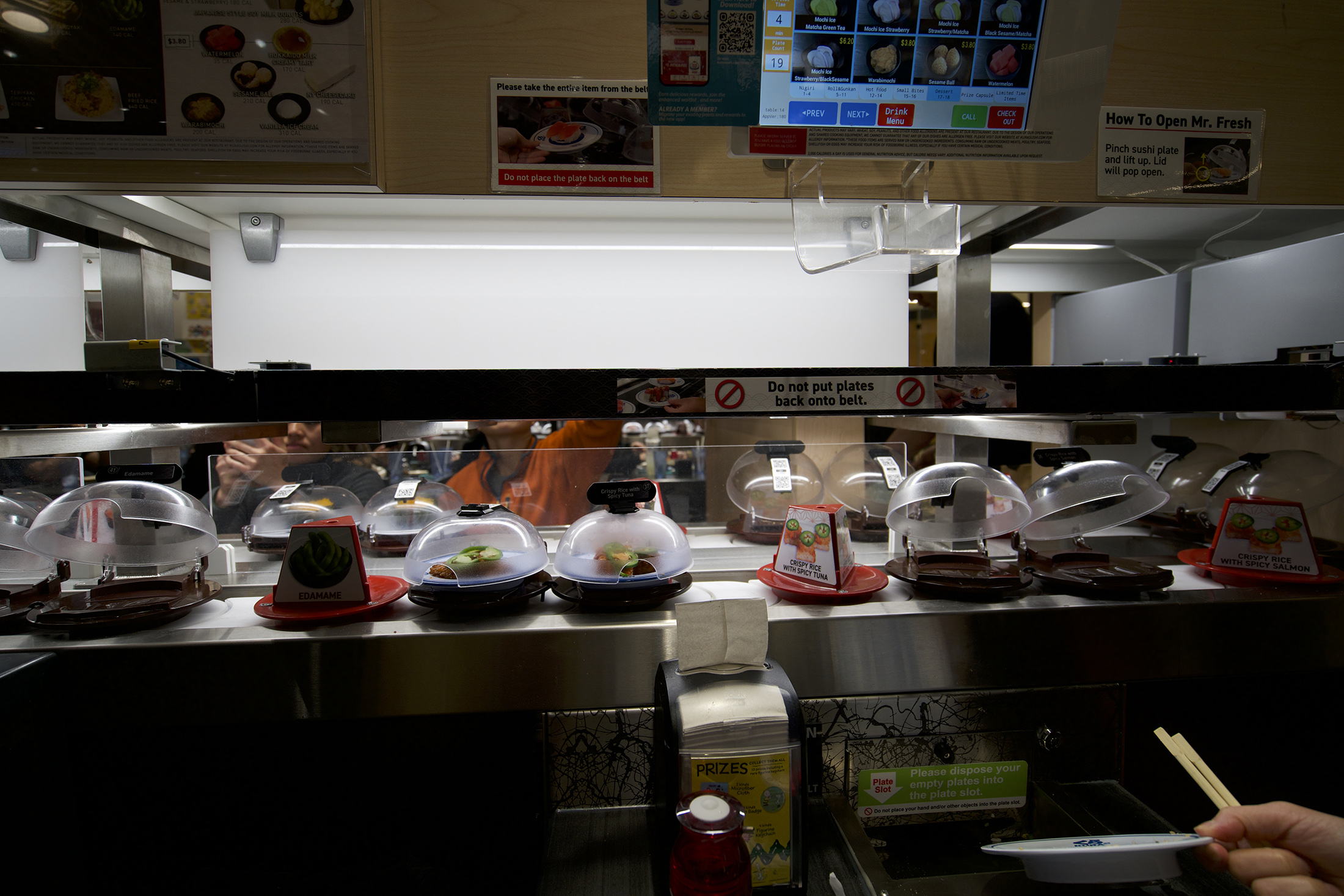 梅兰妮·马丁内斯最近一个星期五晚上去了法拉盛皇后区的久久寿司,她说这种像游戏一样的体验让她一直回头。马丁内斯和三个朋友每个月从纽约到新泽西的福特李郊区的一家分店。