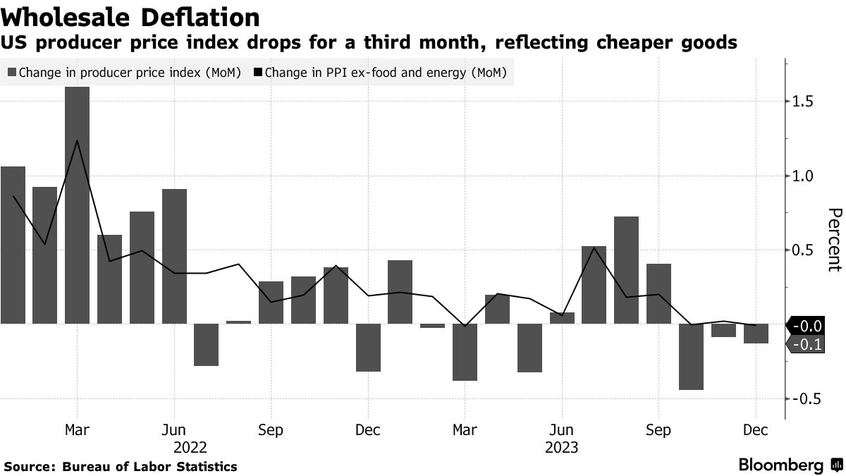 美国生产者支付的价格在12月份继续下降,促使交易员增加对美联储今年将如何积极降息的押注。