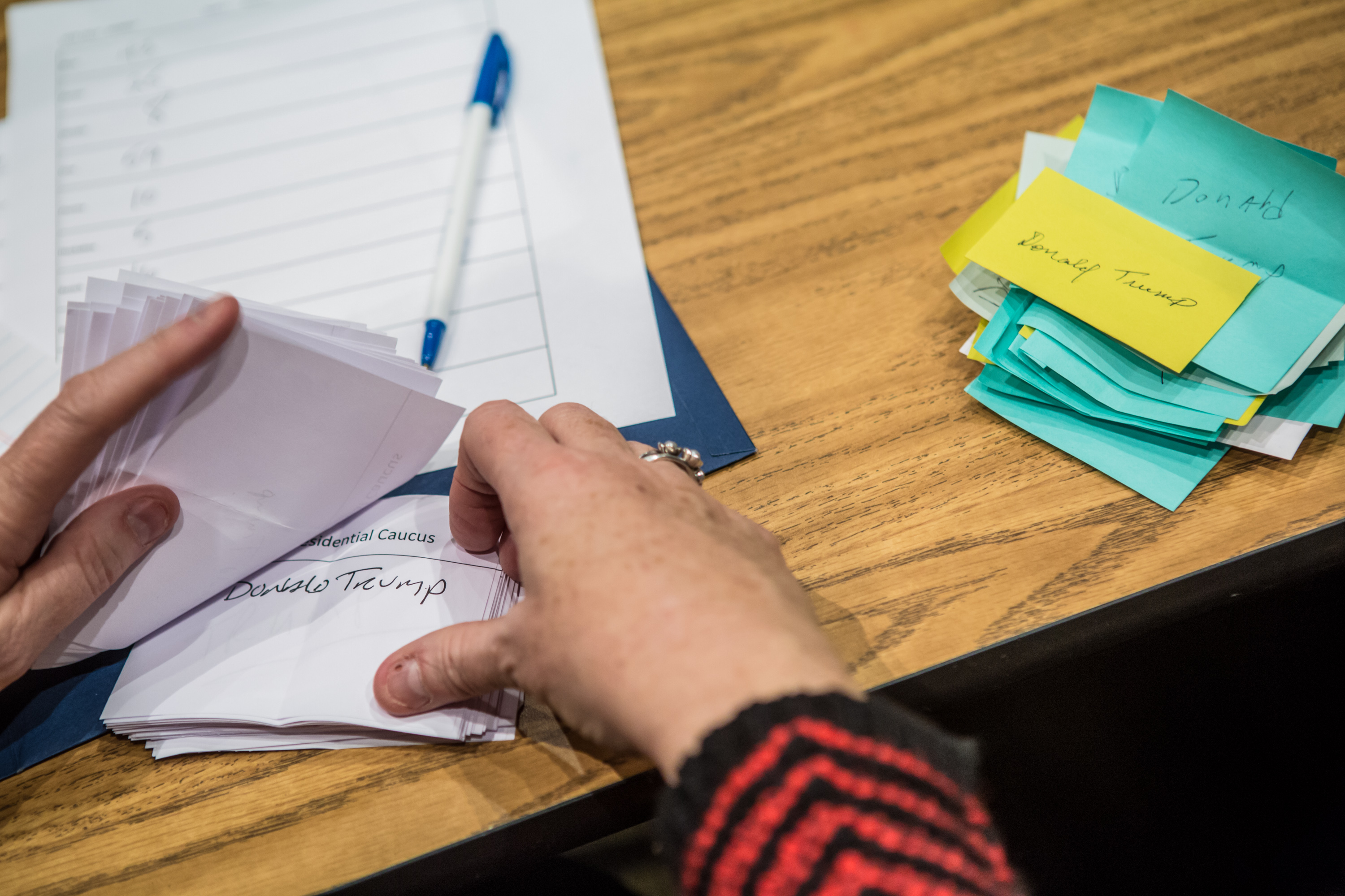 在爱荷华州西得梅因举行的2016年共和党党团会议后进行选票计数。摄影师:Brendan Hoffman/Getty Images### 民主党又是怎么样的?