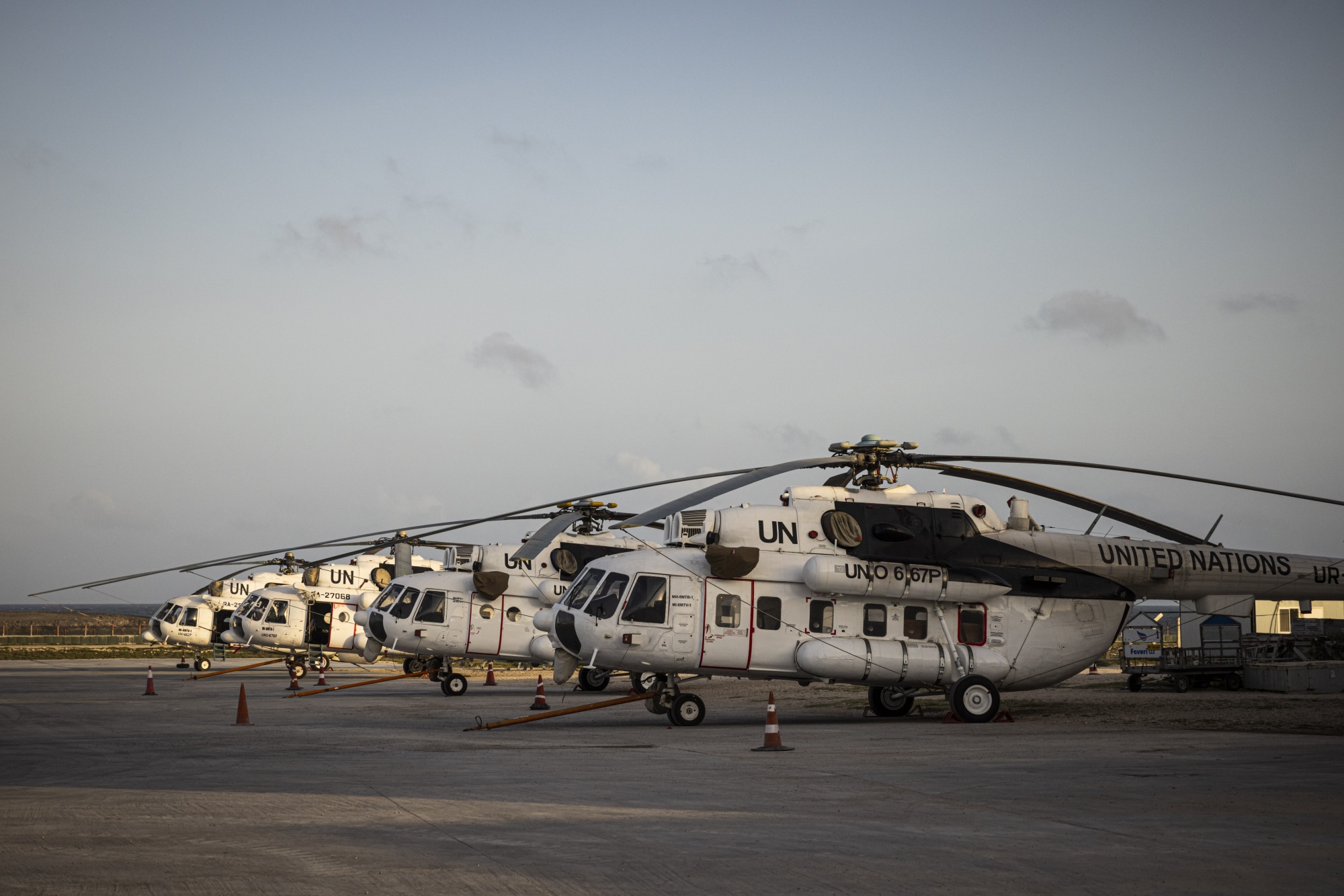 2022年,索马里摩加迪沙的阿丹·阿德国际机场的联合国直升机。