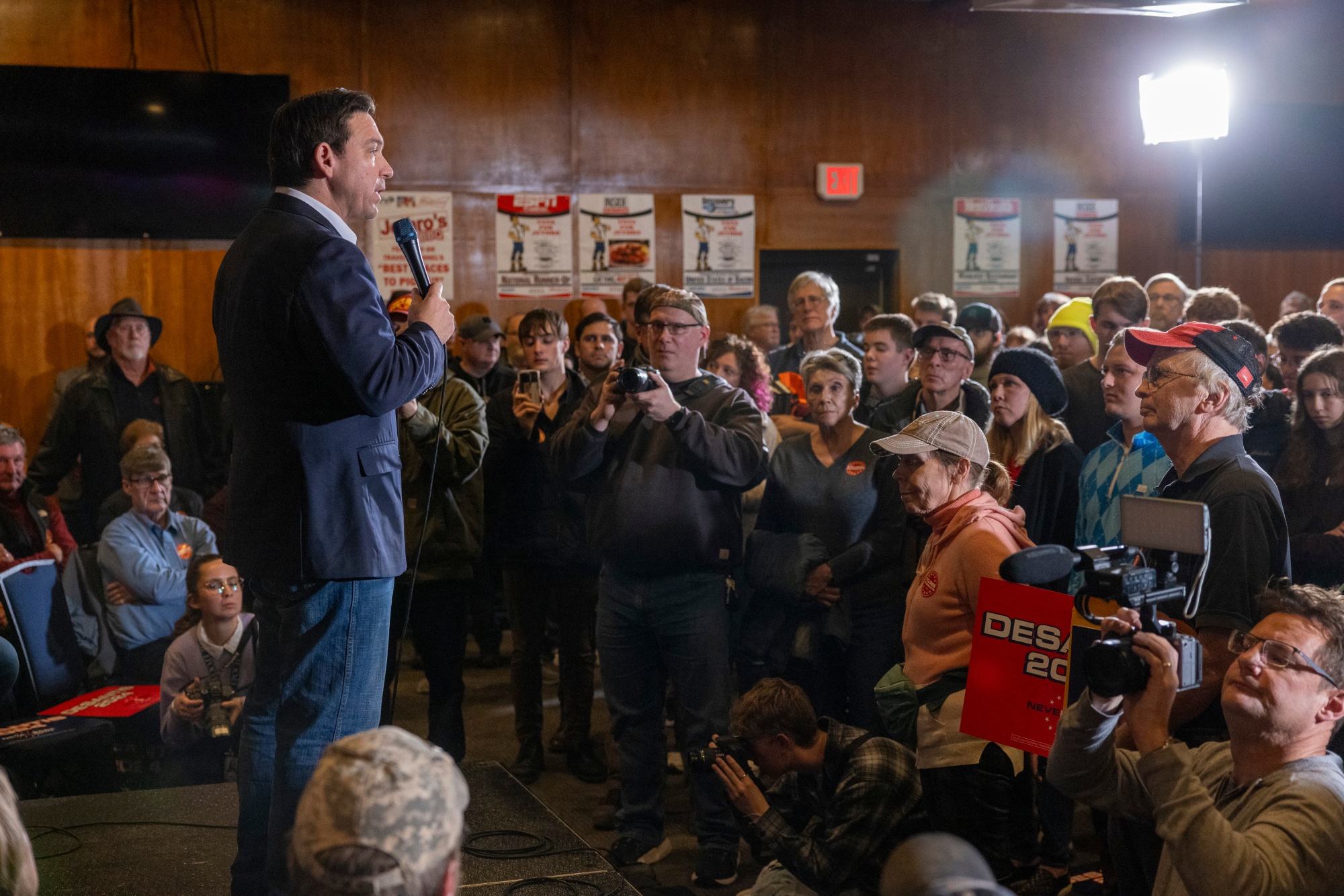 罗恩·德桑蒂斯于1月11日在艾姆斯,爱荷华州。摄影师:Rachel Mummey/Bloomberg自由派联盟的活动已经将周五的活动转移到了线上,而“永不退缩”,一家与德桑蒂斯结盟的超级政治行动委员会,也推迟了当天的活动。德桑蒂斯的竞选团队在周五上午举办了一场活动,吸引了75-100人,副竞选经理大卫·波利安斯基表示。候选人们尚未决定是否继续周六的活动。