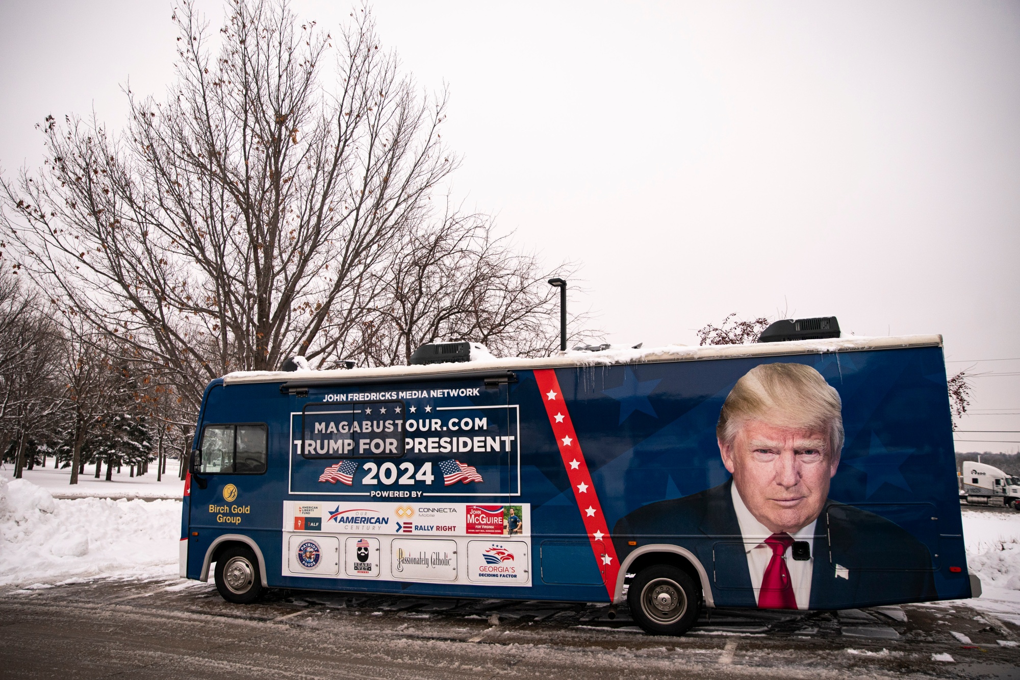 本周,特朗普在爱荷华州预选之前出庭两次——他出席了纽约一起3.7亿美元民事欺诈案的辩护陈述,并前往华盛顿的联邦法院,他正在寻求对2020年选举推翻行为的指控免责。