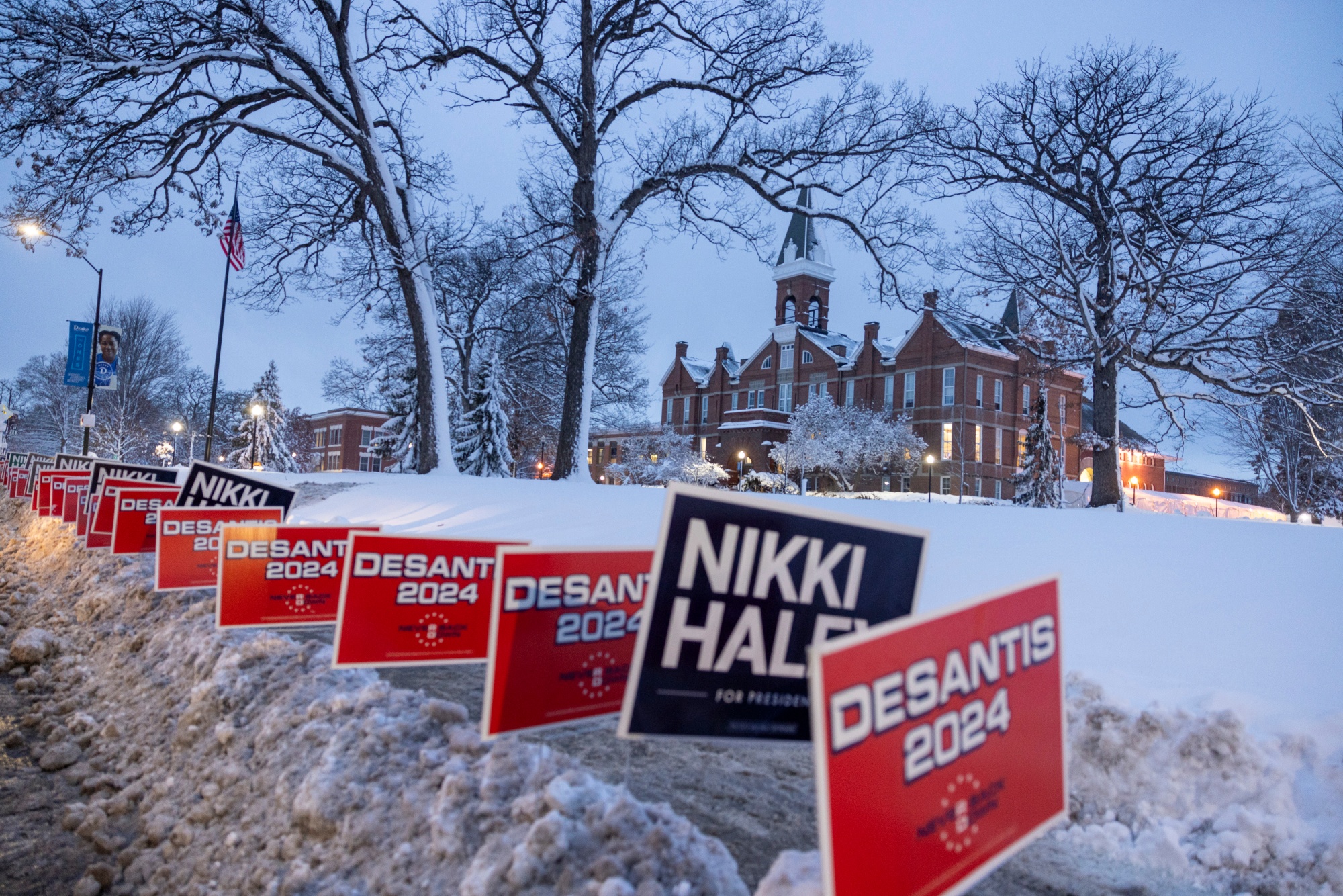爱荷华州党内初选即将举行,得梅因市的标志。摄影师:Rachel Mummey/Bloomberg唐纳德·特朗普很可能会成为11月的共和党候选人,但我们仍然需要让提名过程继续进行。也就是说,如果他在星期一的爱荷华州没有完全占据主导地位,并且民意调查显示即使在刺骨的寒冷天气中,他的胜利可能 仍然存在机会,罗恩·德桑特斯和妮基·哈雷也许还有机会。三位候选人今天将在爱荷华州举行集会。