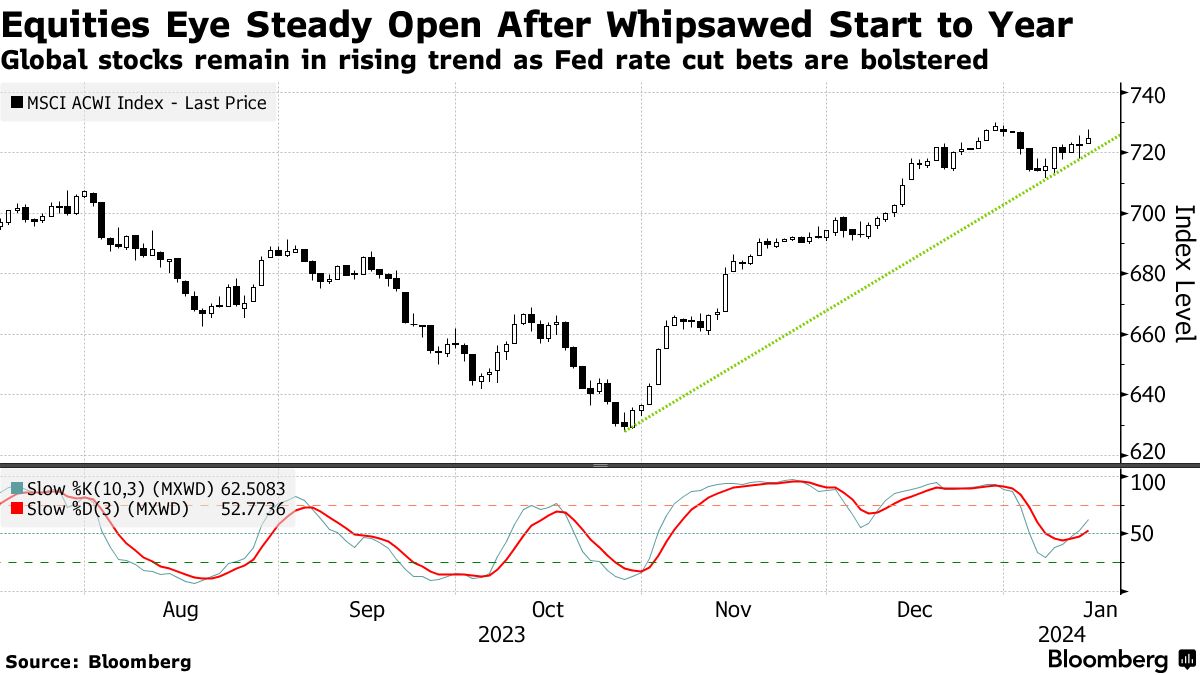 亚洲股市的稳步开局是因为全球股市在今年年初出现了波动,上季度的11%涨幅——三年来最大涨幅——在人工智能的狂热和全球加息周期已经结束的押注中引发了狂热。然而,中国股市在消费支出方面出现了下滑,而日本股市上周达到了1990年以来的最高水平,数十年的通缩正在减弱,疲软的日元支撑了出口收入。