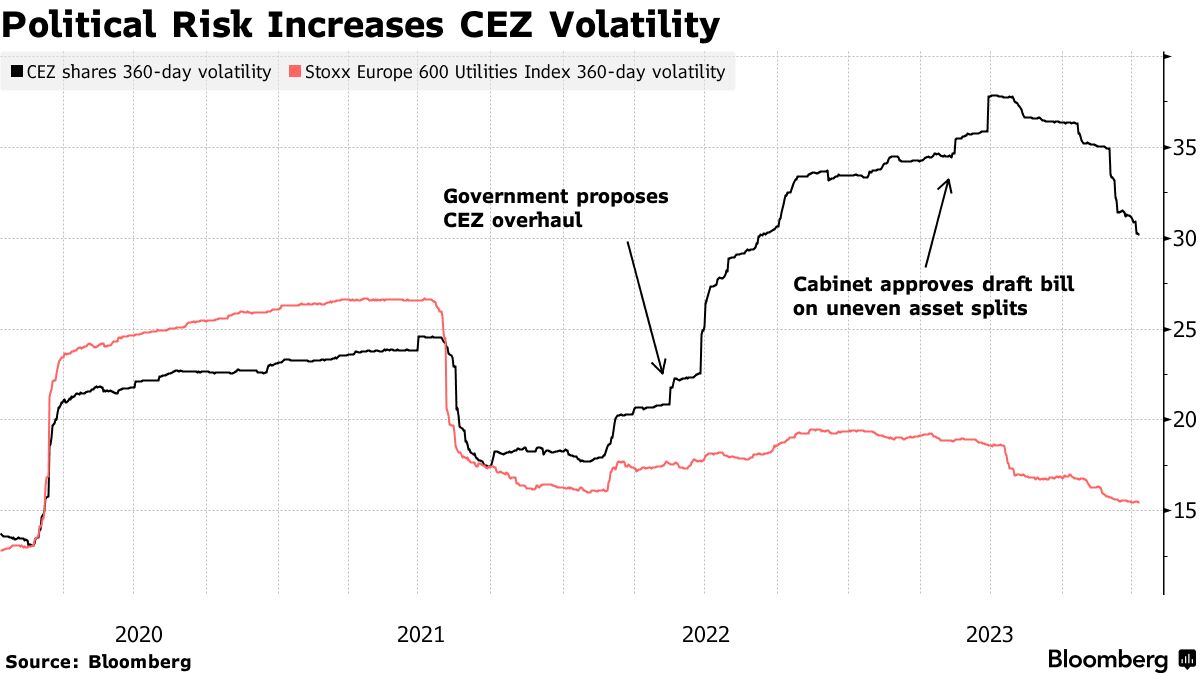 作为欧盟东部地区最大的上市公司,市值达到230亿美元的电力生产商CEZ AS卷入了政府加强对能源行业控制的努力中。尽管政府对其计划模棱两可,但风险在于最终可能会将该公用事业公司拆分并将部分股份摘出市场。