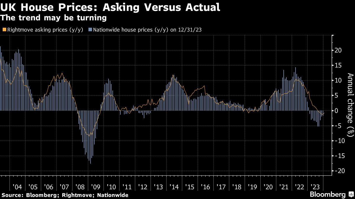 最新的房屋要价报告来自Rightmove。价格在一个月内上涨了1.3%,年度下降了0.7%,从去年12月的年度下降1.1%中恢复过来。