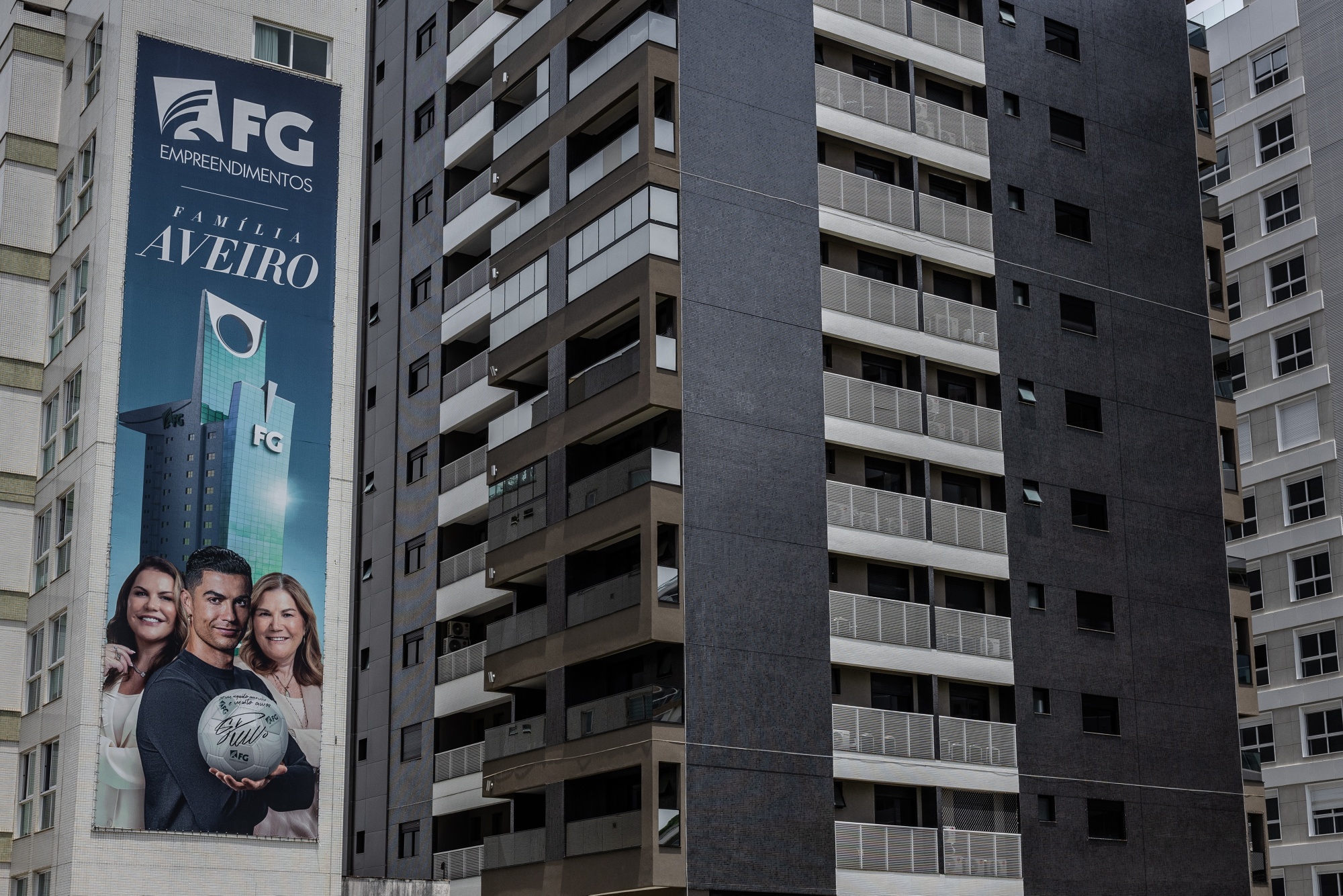 FG Empreendimentos房地产开发商在2023年12月14日星期四在巴西巴尔内阿里奥坎博里乌与足球运动员克里斯蒂亚诺·罗纳尔多的广告。照片:Maira Erlich/Bloomberg