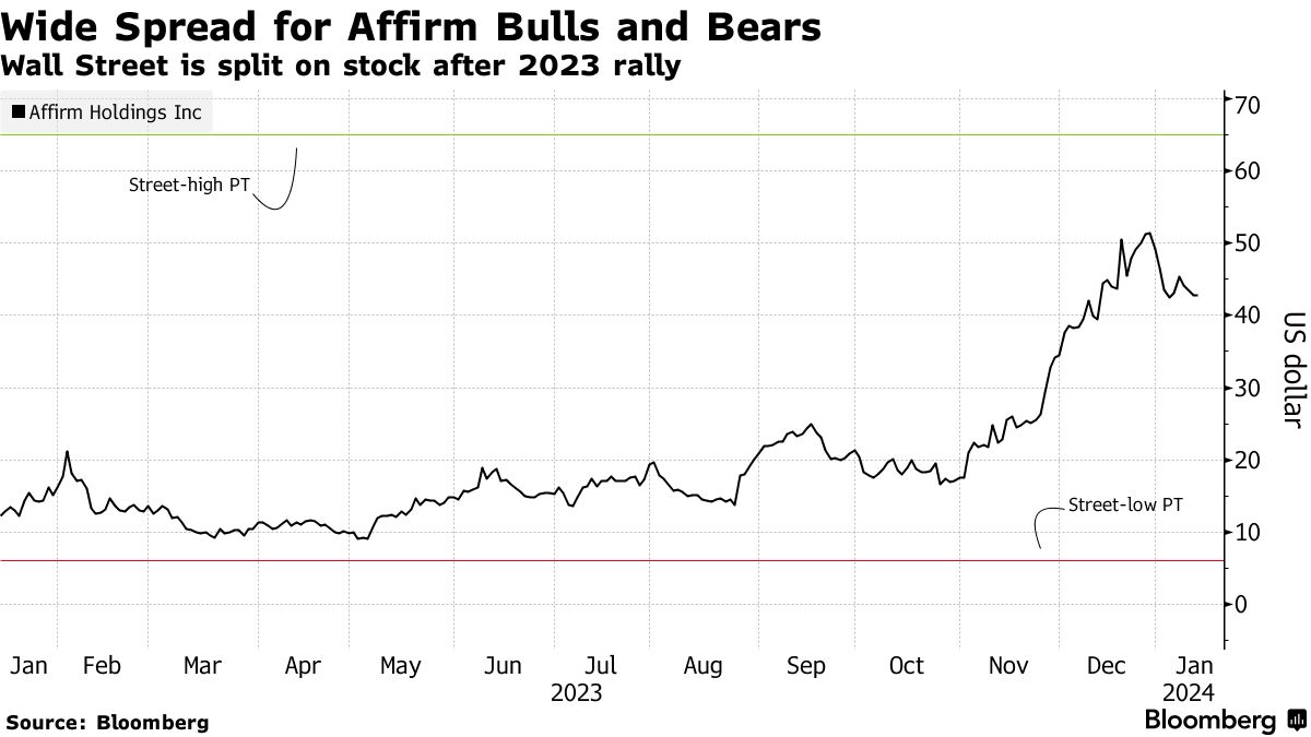 Buy-now, pay-later公司Affirm Holdings Inc.是2023年股市最大的赢家之一,股价飙升了400%以上。大多数华尔街并不看好它的前景。