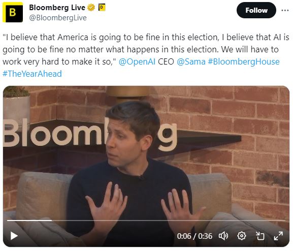 今天下午5点,在彭博电视台的权力平衡节目中,主持人乔·马修采访新罕布什尔大学调查中心主任安德鲁·史密斯,讨论下周初选前该州的共和党提名竞争。早些时候,在达沃斯的彭博电视台上,OpenAI首席执行官萨姆·阿尔特曼讨论了从技术对美国以往选举的影响中学到的东西。