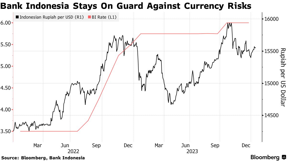 对于荷兰国际集团NV的经济学家尼古拉斯·马帕(Nicholas Mapa)来说,这是有道理的,因为这将给印度尼西亚银行时间“获得更多确定性”,以便迎接美联储的期待转变。这让他相信,货币当局将在2024年上半年的大部分时间保持其限制性立场。