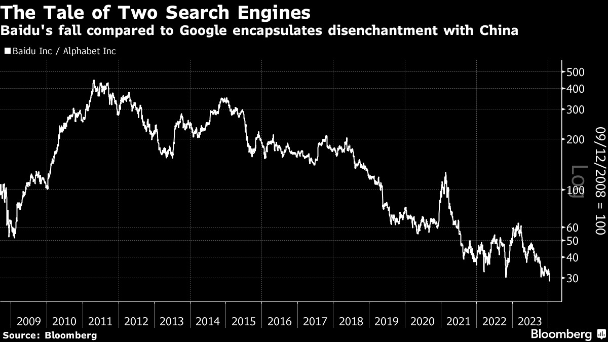 从更广泛的角度来看,百度讲述了自全球金融危机以来资本主义世界与中国的关系。百度和整个中国在2009年大规模财政和货币刺激帮助其引领世界走出衰退时大幅增长。到了2011年,随着大宗商品繁荣的消退和对中国金融体系弹性的担忧上升,情况开始发生变化。然后,随着对习近平日益反私营部门政策的不满情绪蔓延,中国的落后程度进一步加剧。